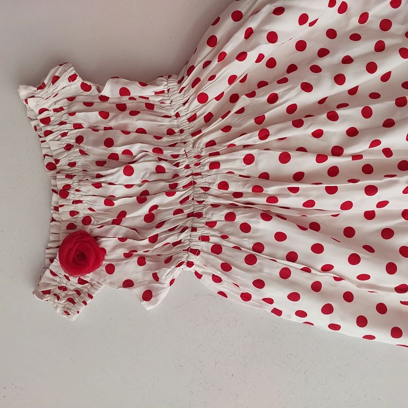 پیراهن نخی دخترانه توپ توپی جنس کتان نخ اعلا