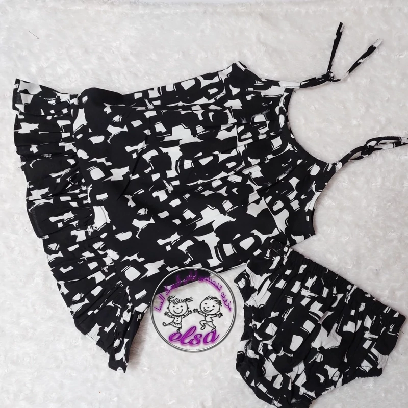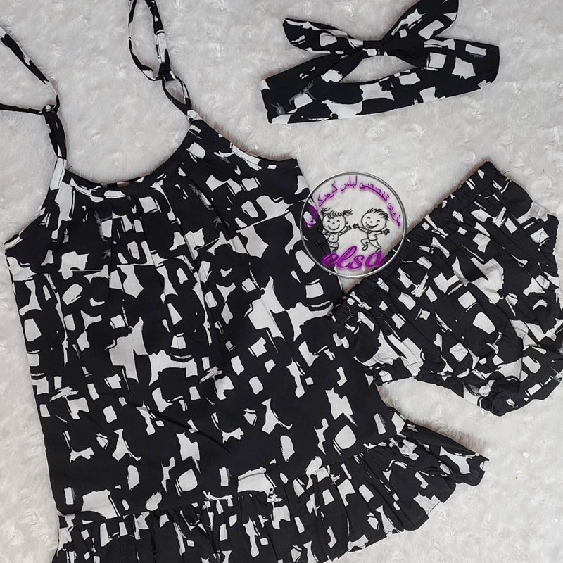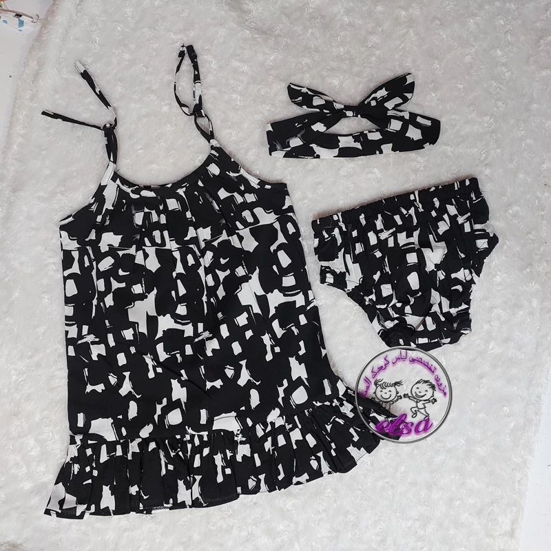 پیراهن نخی بچگانه ست کامل شورت و هد بند و پیراهن نخی خنک و رنگ ثابت تا قد ۴۵ سانت همین قیمت