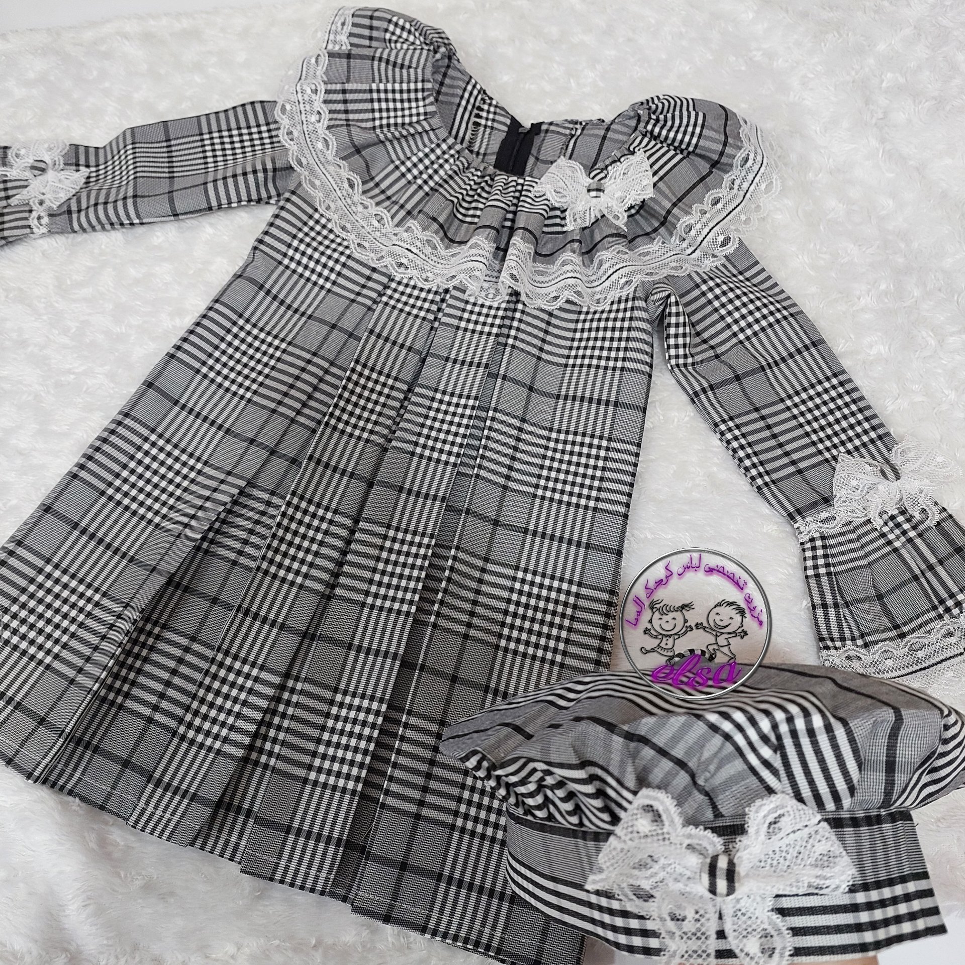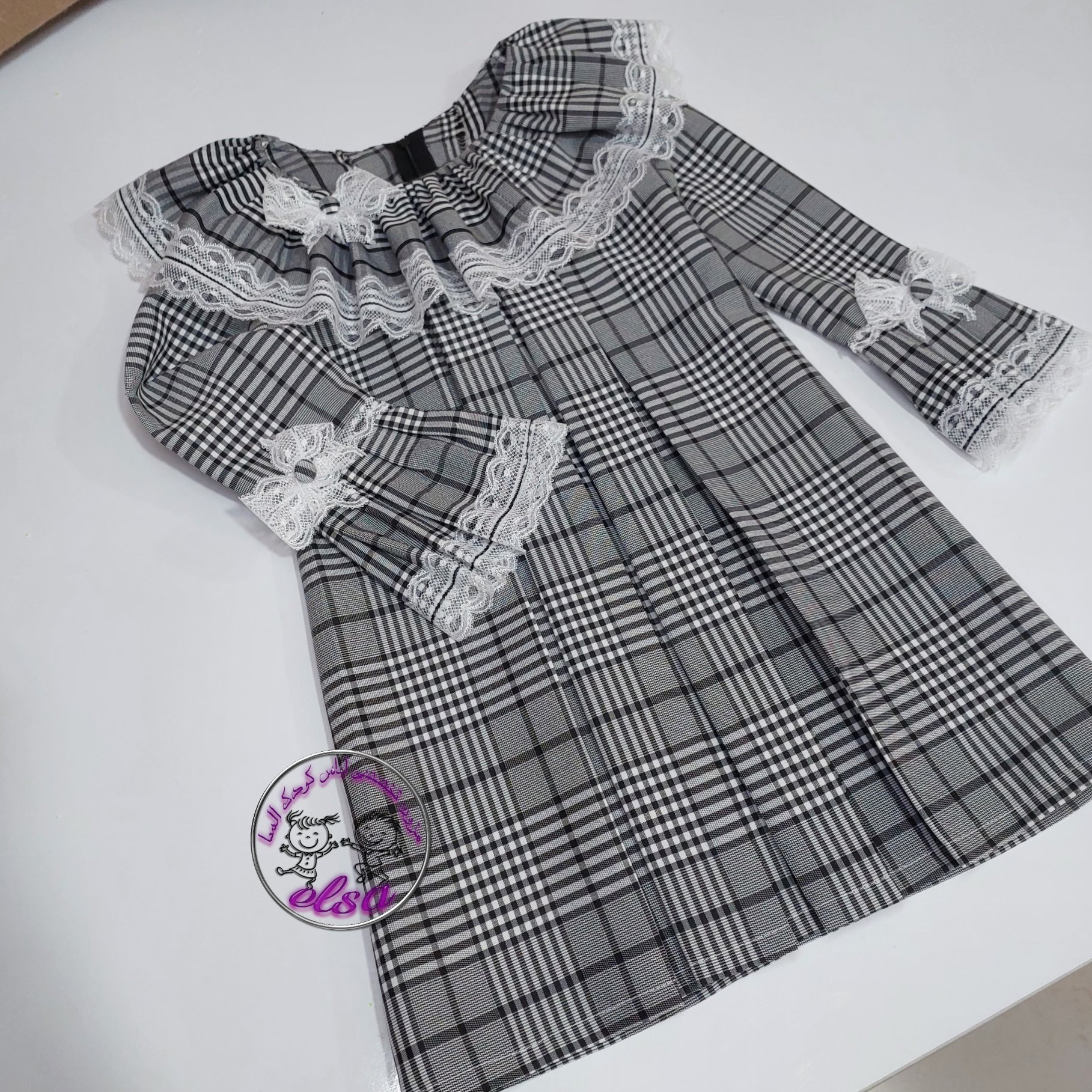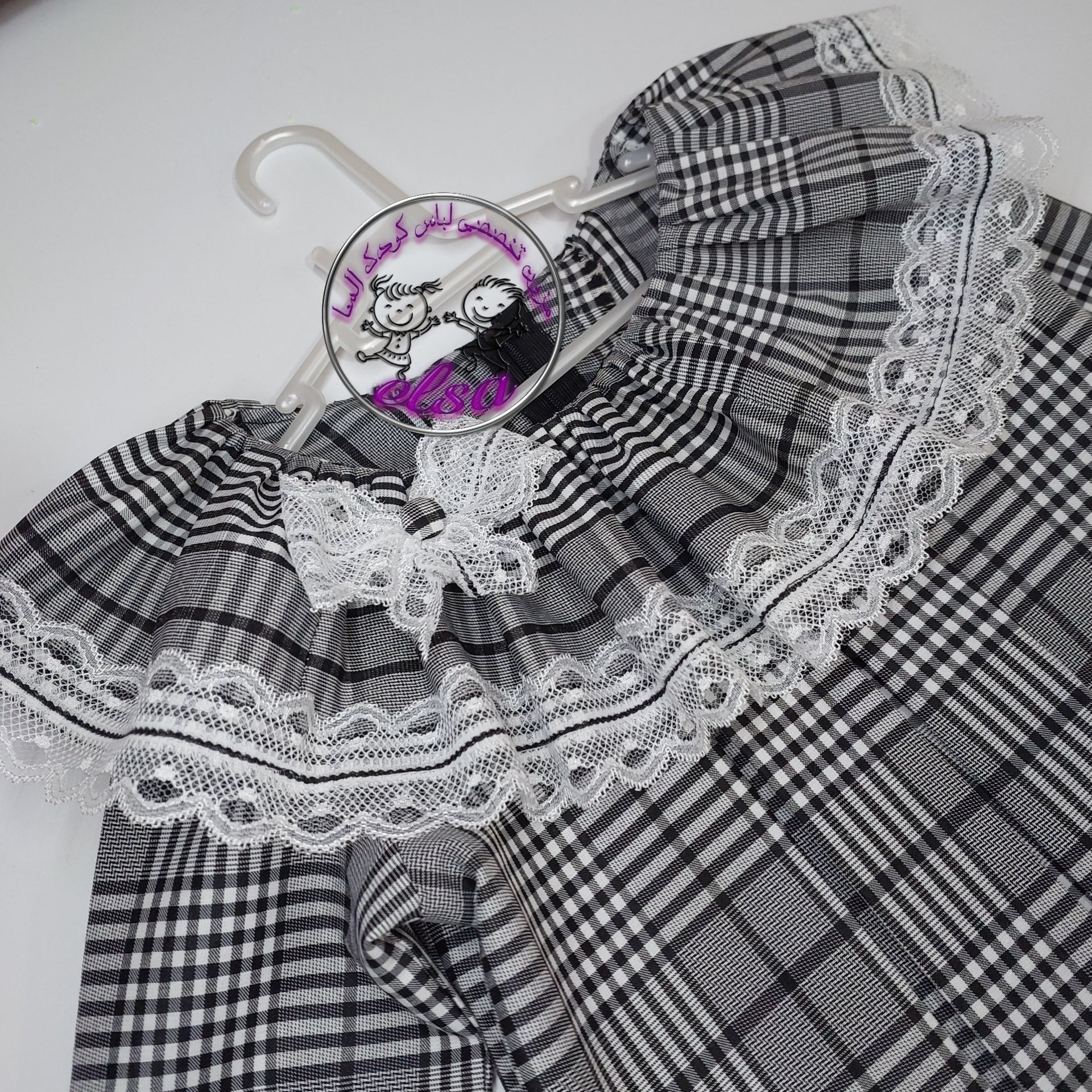 پیراهن دخترانه چهارخونه تور دوزی شده