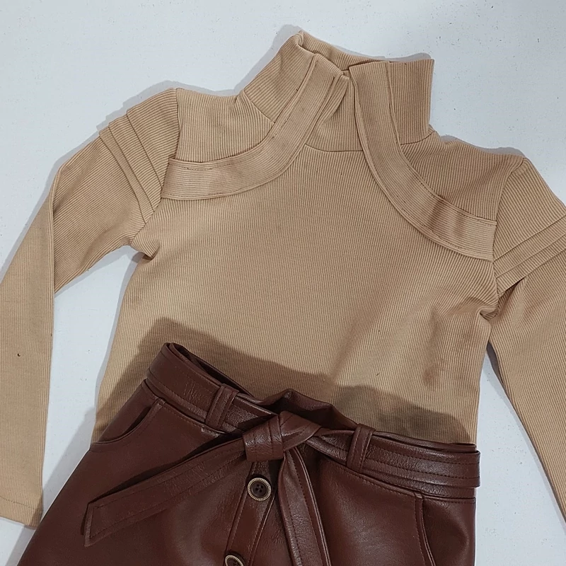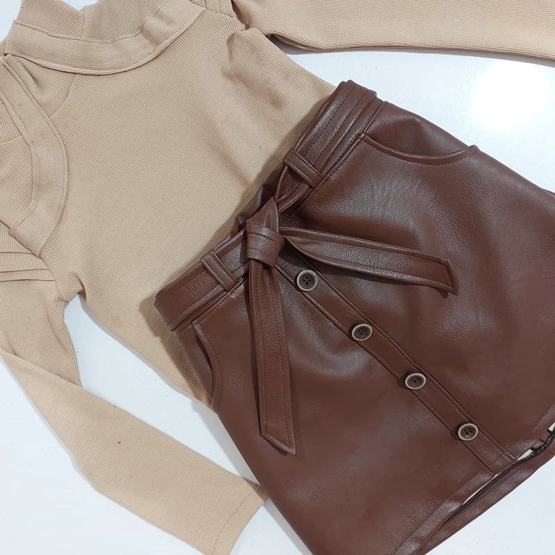 بلوز تریکو کبریتی اعلا و دامن چرم اعلا با تنخوری خاص و زیبا از 1سال به بالا در 3رنگ مشکی عسلی و قهوه ای شماره تماس : امیری 09119395654