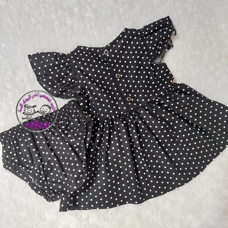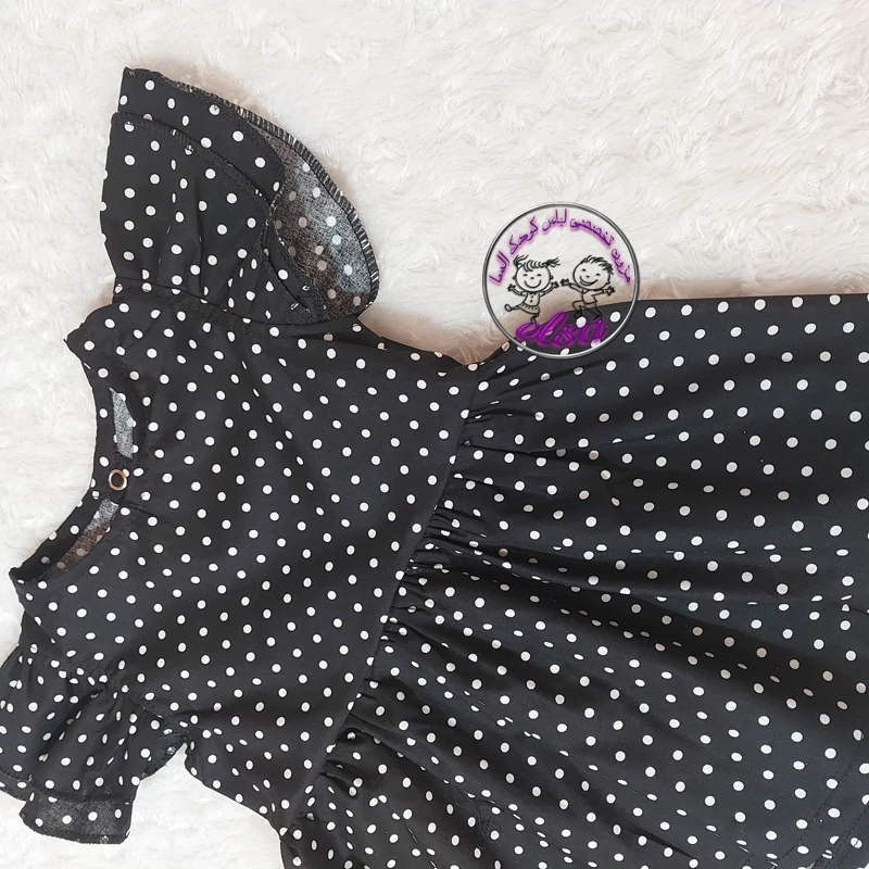 پیراهن نخی دخترانه توپ توپی جنس کتان نخ اعلا
