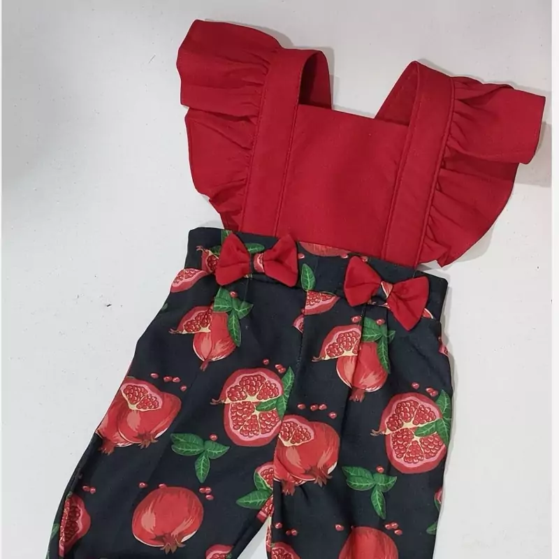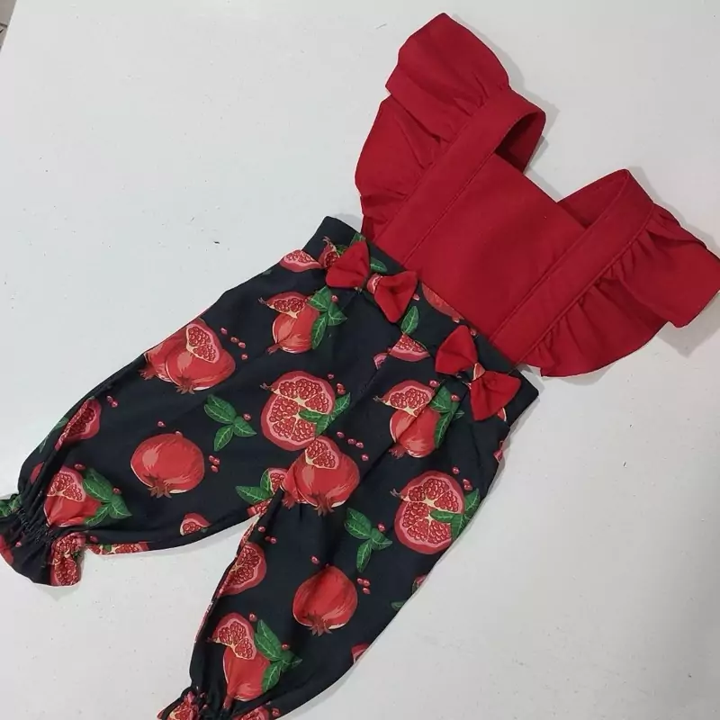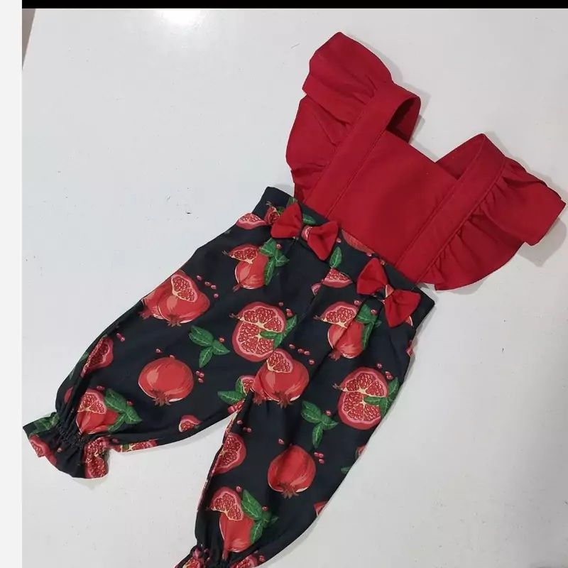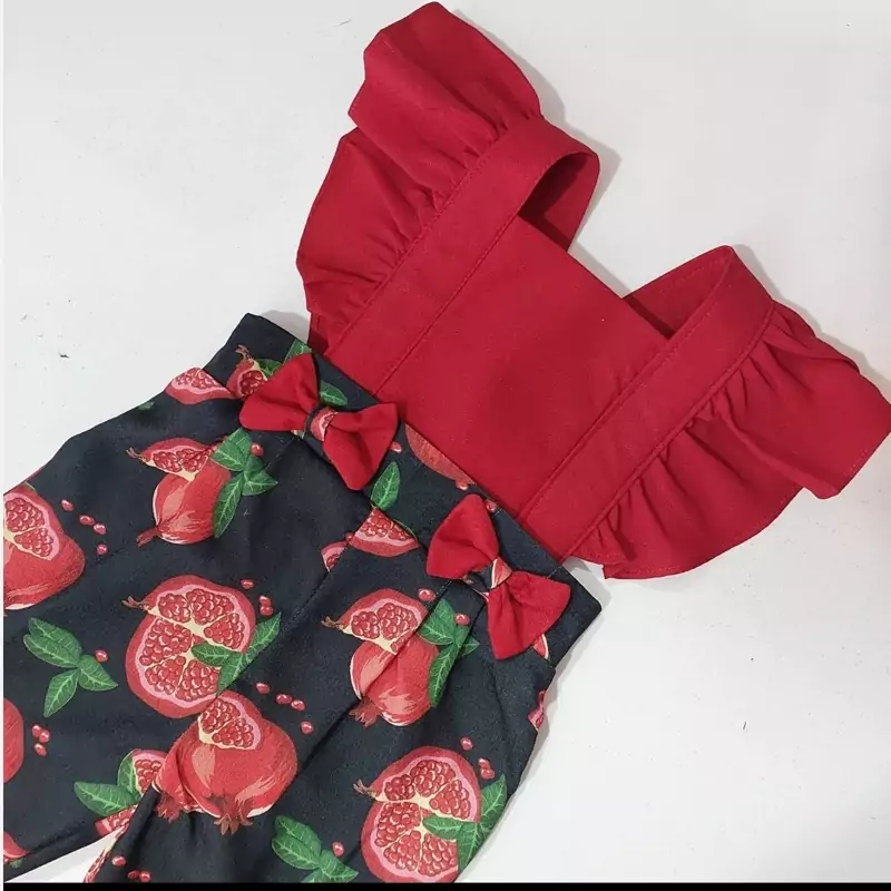 لباس یلدایی طرح انار دخترانه جنس شانتون نخ لطیف و کرپ هد بند 30ت
