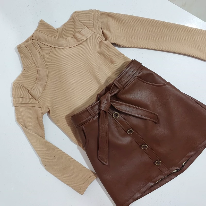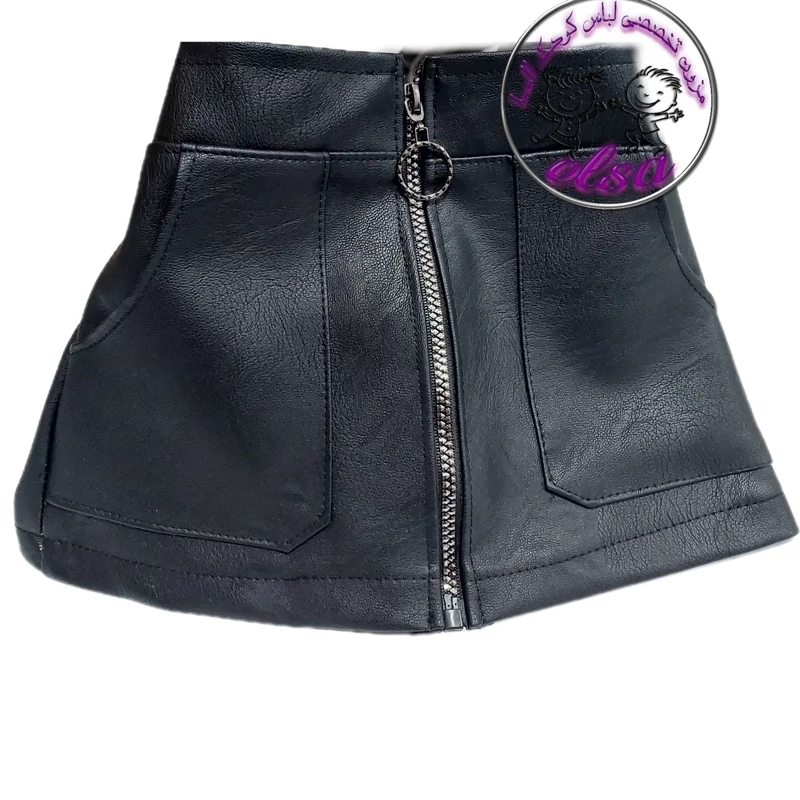 دامن کوتاه بچگانه چرم کیفیت عالی جیبدار و پشت کمر کش