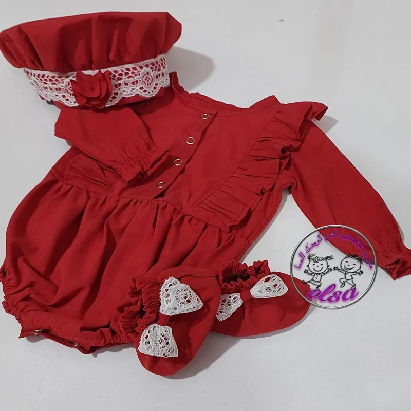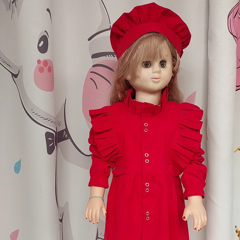 پیراهن دخترانه ست دو تیکه همراه با کلاه فرانسوی تنخور فوق العاده زیبا