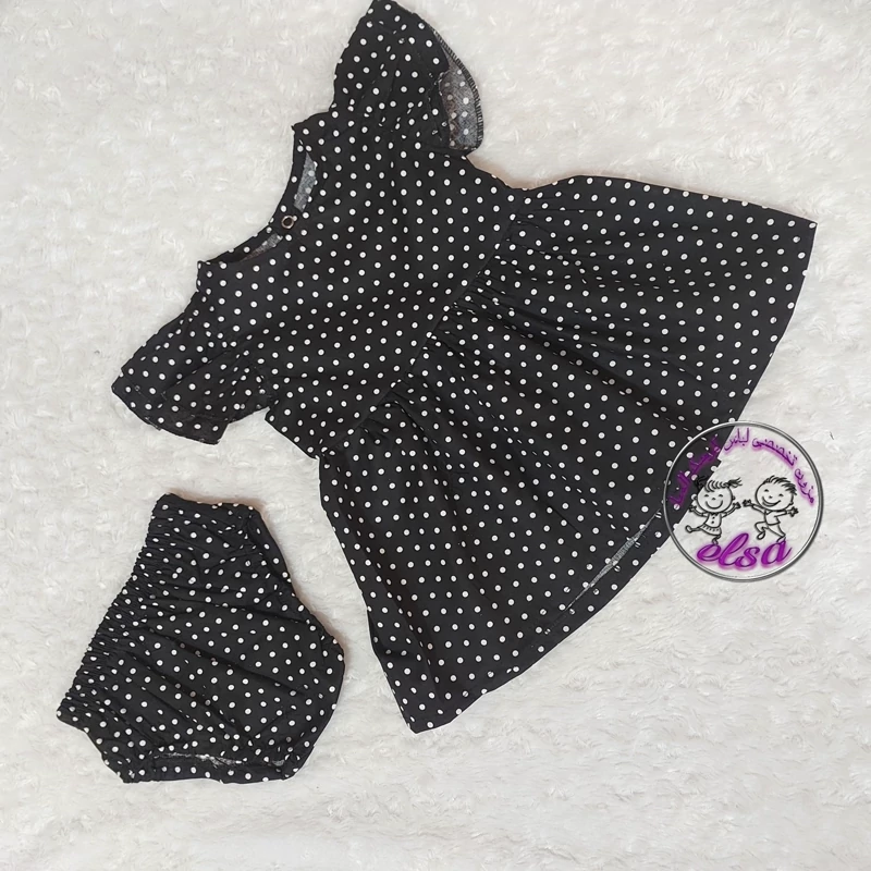 پیراهن نخی دخترانه توپ توپی جنس کتان نخ اعلا