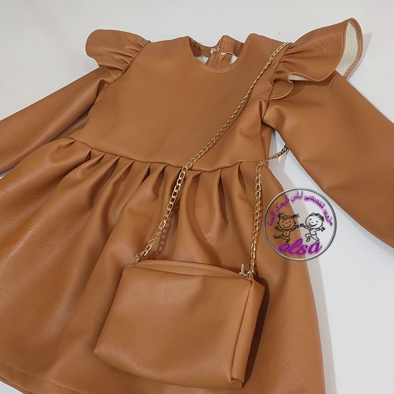 پیراهن بچگانه چرم همراه با کلاه و کیف السا از 1سال تا 6سال در 3 رنگ