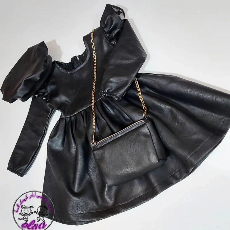 پیراهن چرم بچگانه ست 3تیکه همراه با کلاه و کیف